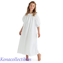 Like the one Felicity wore in colonial times, this night shift has a drawstring neckline and full sleeves edged with lace. Flame-resistant polyester. White.