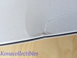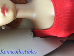 BOX CONDITION: The box has a dented side on bottom of box. Inside the arm holder paper has a small tear. Please see photos. There may be a mark on front of her leg but it's so faint I can't really tell and it didn't show on photographs. Contents have never been removed from original box.