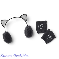 Purr-fectly Warm Winter Accessories-Kitten earmuffs with heart embroidered finger mittens.