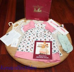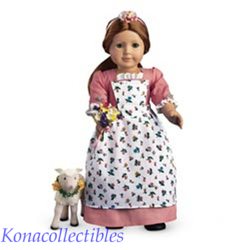 This gown is so fresh and is perfect for Easter! It is used but in excellent condition. There is a pin mark on the pinner apron and socks have been worn, but otherwise it's in like new condition. It is in the original American Girl burgundy box. Sorry, Felicity Doll & Posie the Lamb don't come with the dress, but you can find it in my store! Please note: Doll, lamb not included.