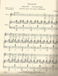 Belle Nuit from Les Contes d' Hoffmann by Offenbach for Soprano & Piano