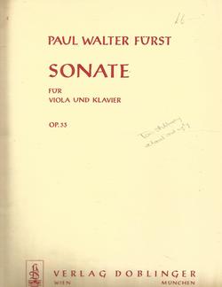 Paul Walter Furst. Sonate for Viola & Piano. Op.33, Doblinger 10.971 Score and Part. 32 and 9 Pages. Viola Part has minor Pencil Notatios, Otherwise every thing is in excellent condition. 16-07
