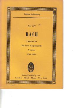 Bach, Concerto for 4 Harpsichords A Minor. Eulenburg No.759