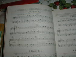 the basic bowings are introduced. The first section presents duets in half and quarter notes while the remainder of the book introduces 8th notes and dotted quarters.
