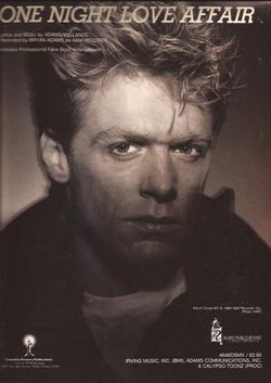One Night Love Affair Bryan Adams lyrics and music by Adams/Vallance Sheet Music includes professional fake book arrangement 1984 published by Almo publications for Columbia Pictures Publications Very good unused condition Minor age/shelf wear from a recently closed music shop on Long Island, NY in the throes of listings the contents of a huge box of sheet music that spanned the decades!