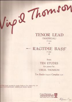 Virgil Thomson Ragtime Bass for Piano Published by Carl Fischer 5 pages Vintage score in excellent condition from the estate of concert Pianist and teacher Natalie Ryshna Be sure to check out my other listings for MUCH MORE!