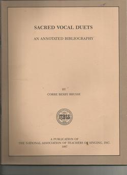 Sacred Vocal Duets An Annotated Bibliography by Corre Berry Brusse A Publication of The National Association of Teachers of Singing Inc. 1987 82 Pages Unused, Pre-Owned excellent condition Lynn 7