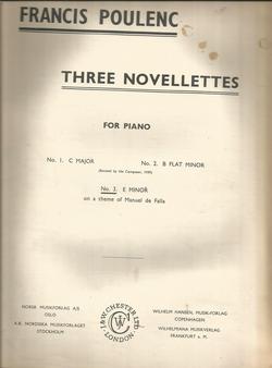Francis Poulenc Three Novellettes No.3, E Minor on a theme of Manuel de Falla published by J&W Chester 6 pages Pre-owned good condition, minor overall age wear minor discoloration to cover See my other listings for TONS more music!