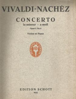 Vivaldi-Nachez. Concerto in A Minor Op.3, No.6 Violin & Piano. Published by Schott 900. 14 Page Score and 7 Page Violin Part. Very Good Pre-Owned Condition. Hick10 Vito1sold