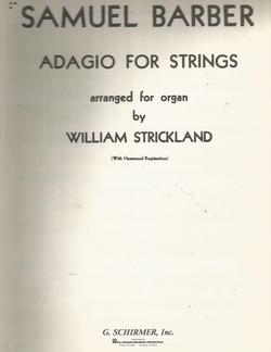 Samuel Barber Adagio for Strings arranged for Organ by William Strickland published by G. Schirmer 7 pages Excellent condition See my other listings for TONS more music!