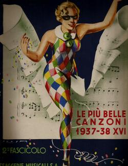 Carnevale D'Italia Le Piu Belle Canzoni 1937-38 XVI Beautiful old Italian book of songs featuring a colorful beauty on the cover 47 pages All Italian Molto Bene!
