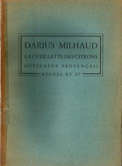 Darius Milhaud. La Cueillette Des Citrons, (Intermede Provencal) Heugel 211