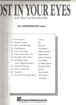 Lost In Your Eyes & Other Top Recorded Hits Chartbuster Series Piano/Vocal/Chord Published by Hal Leonard 78 pages Excellent UNUSED condition From a recently closed music store on Long Island, NY See my other listings for other books from this series, and TONS more!