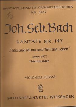 Kantate Nr. 147 "Herz und Mund und Tat und Leben" Violoncello/Bass Part ONLY Published by Breitkopf & Hartel, Nr. 4647 Unused old store stock See my other listings for TONS more!