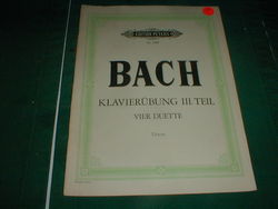 J.S. Bach "Klavierubung III. Teil" Vier Duette. Urtext. Published by Edition Peters.No.4465.