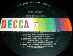 Easy to remember Bing Crosby. DL 4250. Lp