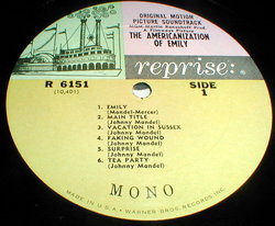 Original Motion Picture Soundtrack. The Americanization of Emily . Music by Johnny Mandel. On the Reprise Label R6151. 33Rpm Lp. Record and Jacket are Near Mint. Shaw Collection. Jazzbox49.