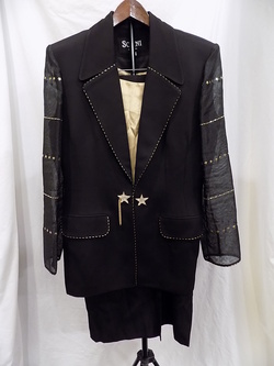 Vtg SOLINI New York Gold & Black Star & Stripe 3Pc Skirt Suit Women 8-USA (314)