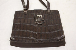 WILSONS LEATHER Brown "Mock Croc" Briefcase/Shoulder Bag /Silvertone Fixtures-B5