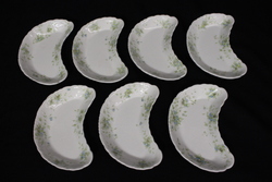 7pc Vintage Warwick China BLUE FLORAL & Green Ivy 6.5" Crescent Bone Dish Plates