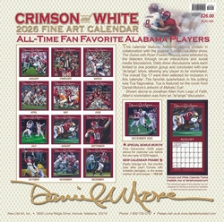 This 13-month 12"x12" wall calendar (opens to 12"x24") includes the fans' favorite players as seen in the Alabama Football artwork by Daniel A. Moore!