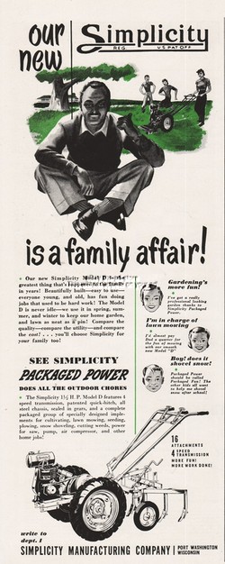 1949 Simplicity Mfg Port Washington WI Rototiller Model D Garden Tractor Art Ad