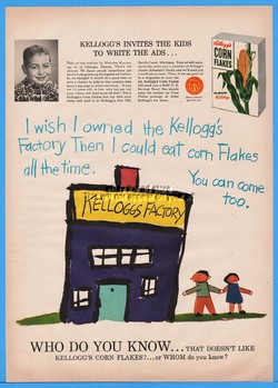 1952 Kelloggs Corn Flakes Child Drawing Of The Factory Malcolm Kovacs Chicago Ad