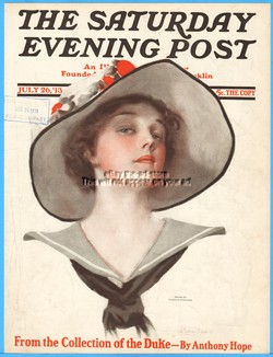 1913 Saturday Evening Post Penrhyn Stanlaws Woman in Hat Front Cover ONLY