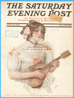 1912 Saturday Evening Post Charles David Williams Woman With Mandolin Cover ONLY