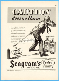1937 Seagram's Crown Whiskey Fireworks Firecracker Caution Does No Harm Print Ad