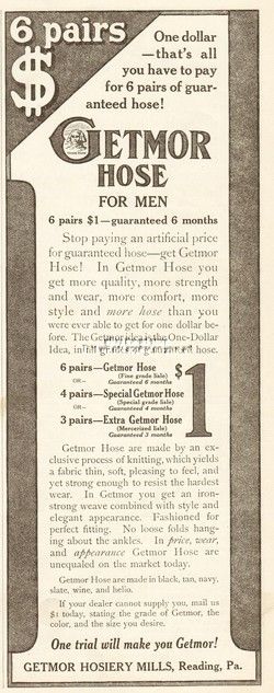 1912 Getmore Hosiery Mills Reading Pennsylvania Men's Stocking Socks Hose Ad