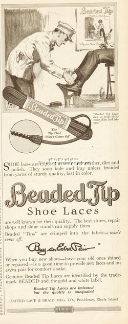 1921 United Lace & Braid Inc.Providence RI Beaded Tip Shoe Laces Shoeshiner Ad