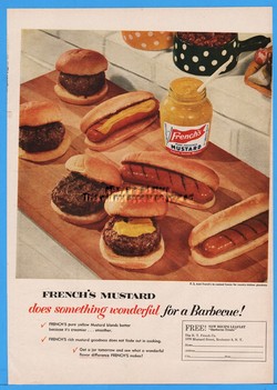 1954 Frenchs Mustard Hot Dogs Hamburger Sandwiches Photo Magazine Print Ad