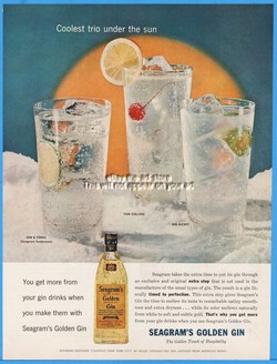 1956 Seagrams Golden Gin Tonic Tom Collins Gin Rickey Cocktail Bar Wall Decor Ad
