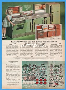 1969 Steel Kitchen Set Stove Refrigerator Sink Cabinet Dish Cook Baking Toy Ad