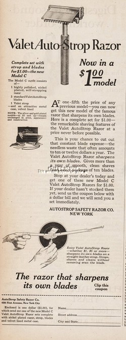 1922 Autostrop Safety Razor Co New York NY Valet Auto Strop $1 Model Shaving Ad