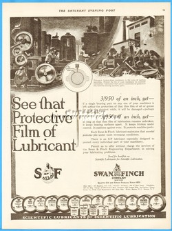 1918 Swan & Finch Vintage Ad NYC S-F Lubricant Machinery Oil Grease Products