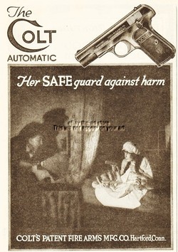 1915 Colt Automatic Pistol Her Safeguard Against Harm Hartford CT Gun Print Ad