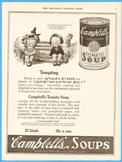 1921 Campbell's Tomato Soup Kid Canned Food Tempting 1920's Kitchen Décor Ad