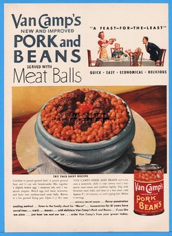 1942 Van Camps Pork And Beans Meat Balls Recipe Family Feast for the Least Ad