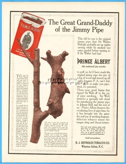 1913 Prince Albert Tobacco R J Reynolds Sir Walter Raleigh Jimmy Pipe Ad