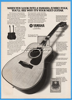 1977 Yamaha FG-375S Jumbo Folk Guitar Buena Park CA Vintage Photo Print Ad