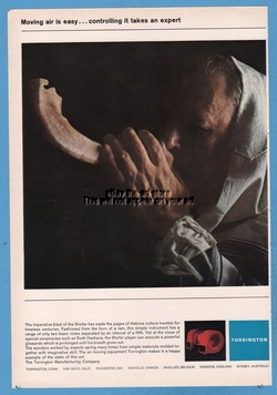1965 Jewish Hebrew man blowing Shofar horn of a ram Torrington Manufacturing ad