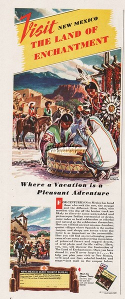 1948 New Mexico Land of Enchantment Native American Indian Drummer Travel Ad