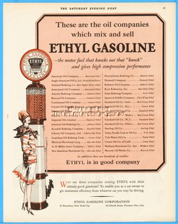 1928 Ethyl Gasoline Gas Pump Globe Art Service Station 192X flapper girl art Ad