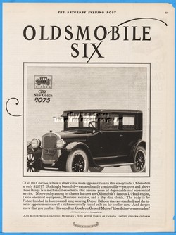1925 Oldsmobile Six Coach Olds Motor Works Lansing MI Oshawa ON General Motor Ad