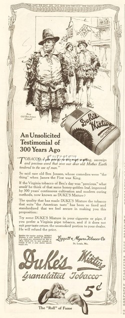 1915 Ben Jonson Duke's Cigarette Pipe Tobacco Ligget & Myers St Louis MO Vtg Ad