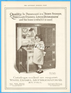 1911 Wood Ice Box White Enamel Refrigerator Co St Paul MN Bohn Syphon Ad