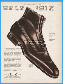 1922 SELZ Six Leather SHOES 1920's Mens Fashion Style Footwear Ad