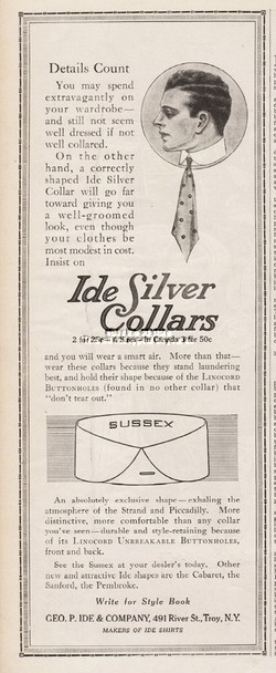1913 Ide Silver Collars Details Count Troy NY Sussex Magazine Print Art Ad